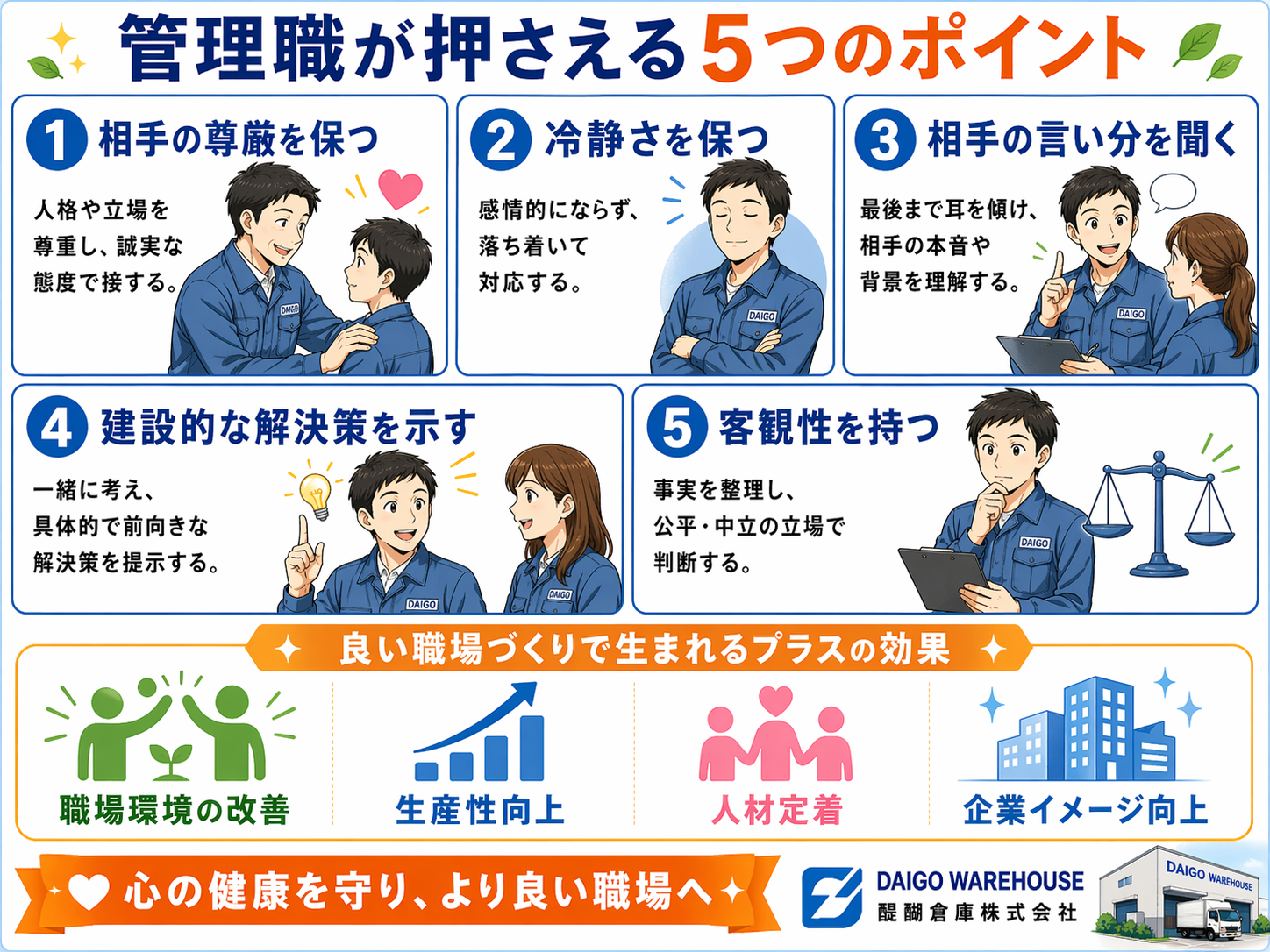 • 企業イメージの向上:健全な職場環境は企業ブランドとして対外的にもプラスです