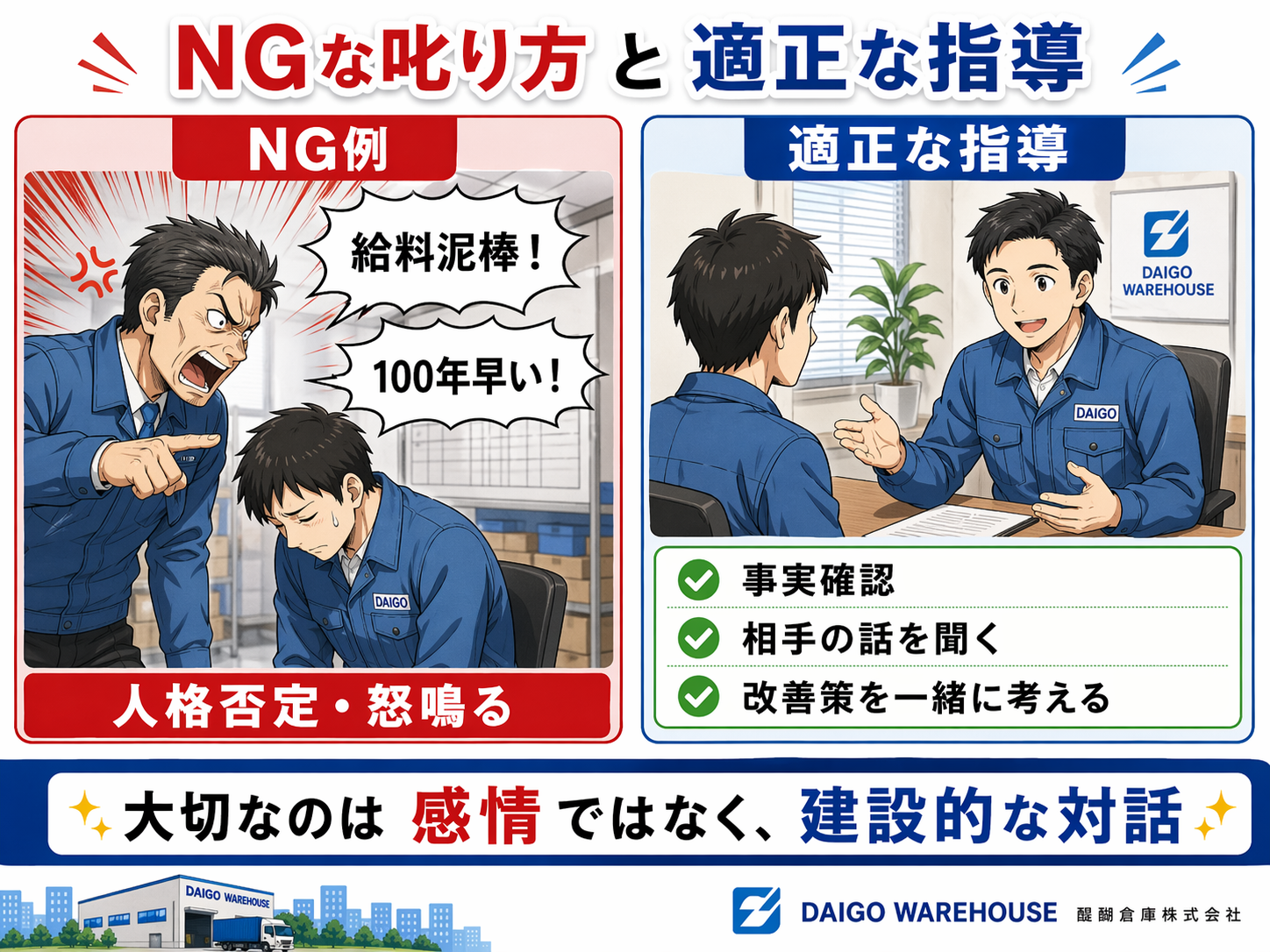 業務改善を目的とした冷静で建設的な指導は、部下の成長につながり、職場環境を向上させます。